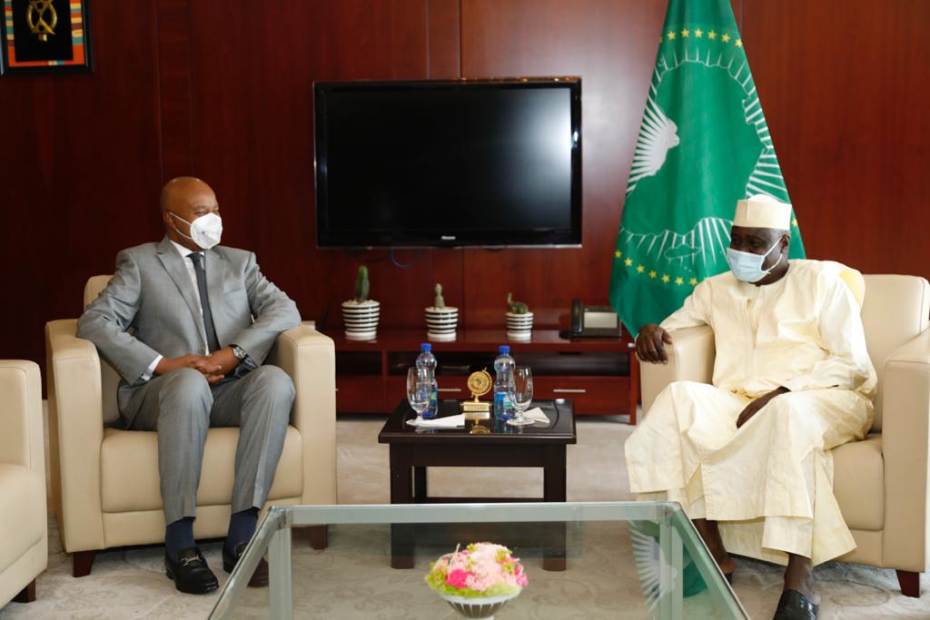 Addis Ababa (Diplomat.so)- The Minister of Foreign Affairs and International Cooperation of the Federal Republic of Somalia, H.E. Mr. Mohamed Abdirizak Mohamud Abubakar, met today in Addis Ababa, capital of Ethiopia, with the Chairperson of the African Union Commission, H.E. Mr. Moussa Faki Mahamat, and discussed with him ways to enhance cooperation between Somalia and the African Union Commission, as well as exchanging views on continental issues of common interest, including regional stability and the renewal of the African Union Mission In Somalia (AMISOM) mandate.