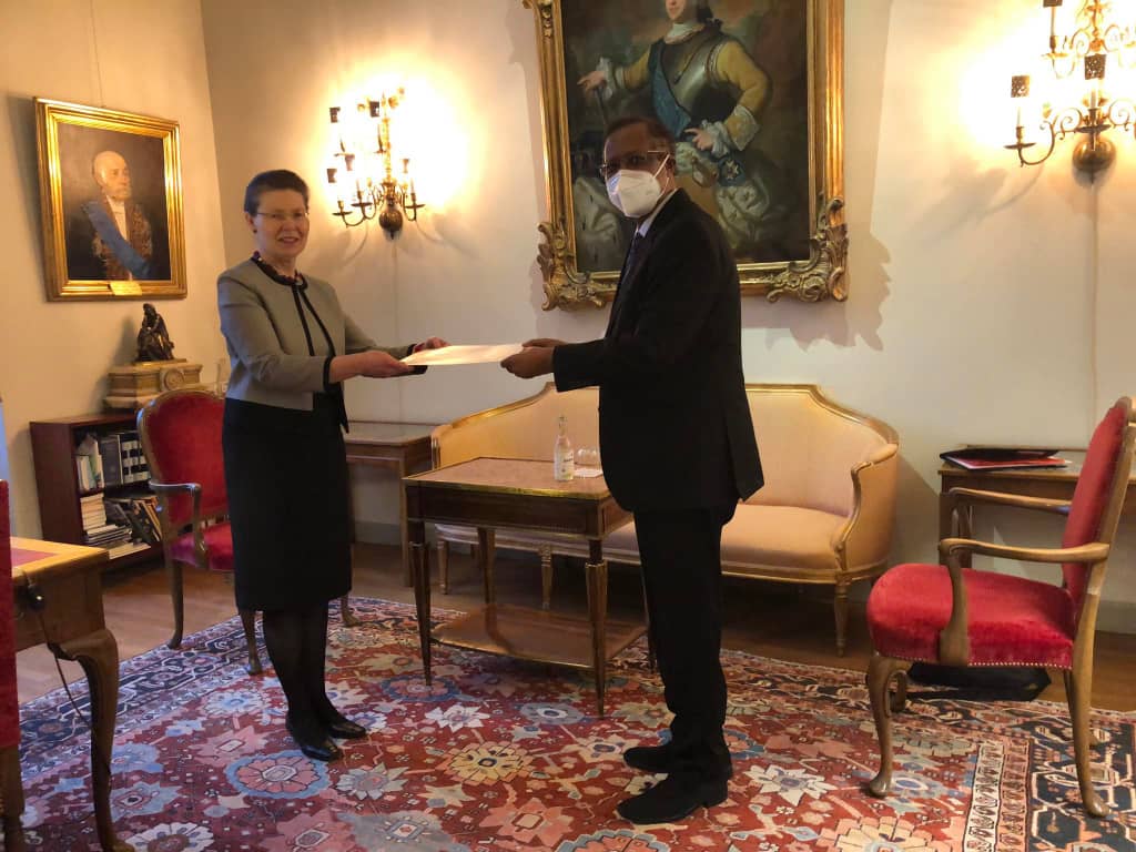 Stockholm (Diplomat.so) - The Ambassador of the Federal Republic of Somalia to the Kingdom of Sweden, H.E. Mr. Mohamed Hassan Abdi, handed over his credentials on Thursday (3 February) to the King of Sweden, His Majesty King Carl XVI Gustaf, through the Chief of the Protocol Department at the Swedish Ministry of Foreign Affairs, Ambassador Maria Christina Lundqvist.