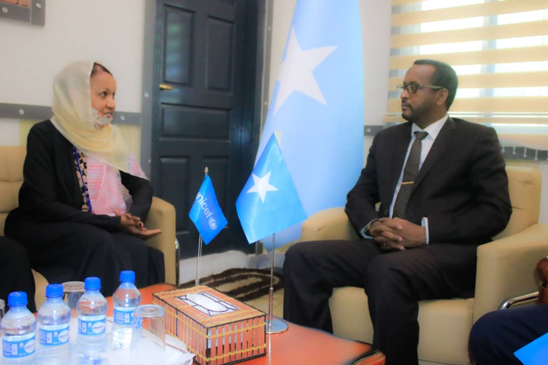 Mogadishu (Diplomat.so) - The Acting Foreign Minister and State Minister for Foreign Affairs and International Cooperation, H.E. Mr. Balal Mohamed Cusman, received on Sunday in his office at the Ministry the credentials of the new representative of the United Nations International Children's Emergency Fund (UNICEF) in the Federal Republic of Somalia, Ms. Wafaa ElFadil Saeed Abdelatef.